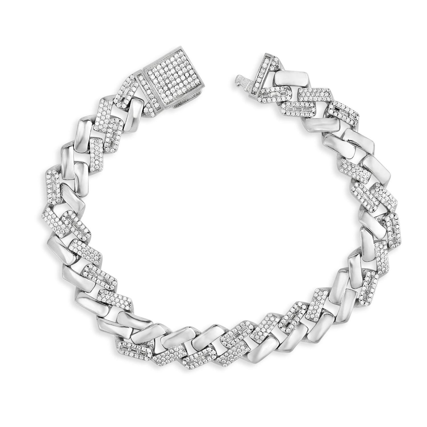 Pinnacle 925 Silver Signature Round Link Bracelet with Sparkling CZ for Men