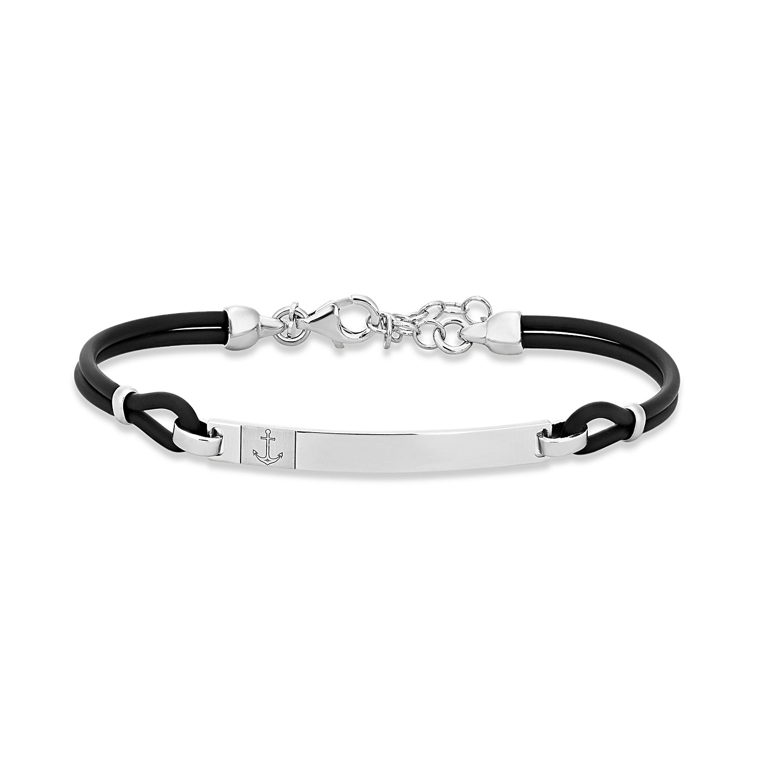 Velocity 925 Silver and CZ Sport Black Rubber Bracelet for Men